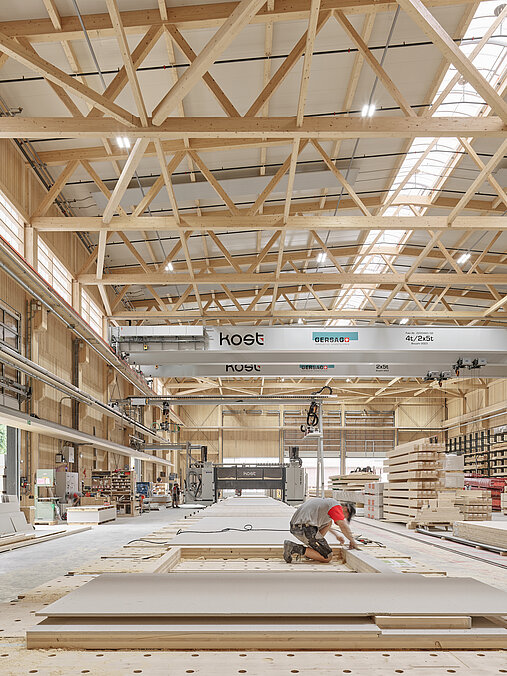 Die Firma Kost AG in Küssnacht am Rigi bezog im August 2023 in die neue Werkhalle, in welcher Deckenstrahlplatten ZIP installiert wurden. Um die beeindruckende Optik mit den sichtbaren Holzbalken nicht zu beeinträchtigen, wurden die Elemente nahezu unsichtbar in die Decke integriert.