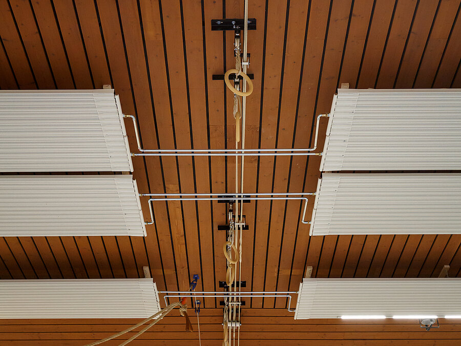 Die Sanierung der Turnhalle war mit einer umfassenden Erneuerung der Gebäudetechnik und der Verbesserung der Gebäudedämmung verbunden, soweit dies aus bauphysikalischer Sicht möglich und sinnvoll war. Um die gesteckten Ziele hinsichtlich Wärme, Beleuchtung, Sicherheit und Effizienz zu erreichen, hat sich die Bauherrschaft für die Deckenstrahlplatten von Zehnder entschieden.